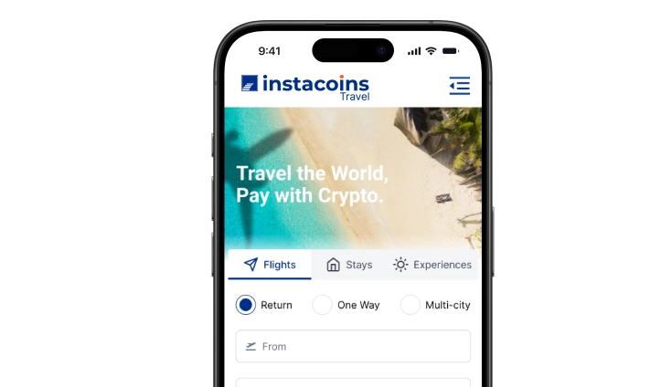 Use your crypto to book flights, stays, experiences and events through Instacoins Travel. A secure, regulated and human-supported platform designed for seamless global travel planning.